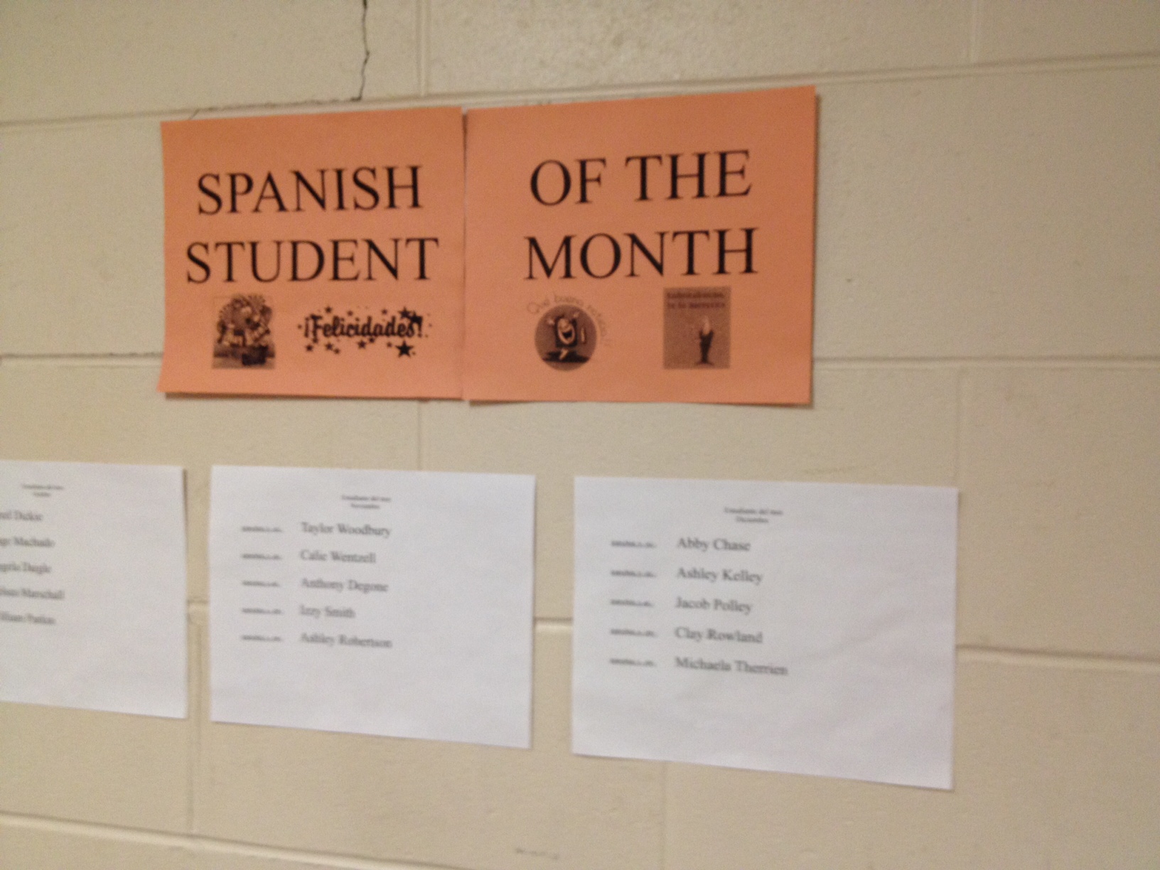5) Spanish student of the month. Each month I pick one student per class to be the Spanish Student of the Month. I post the names outside my classroom on the wall for everyone to see.