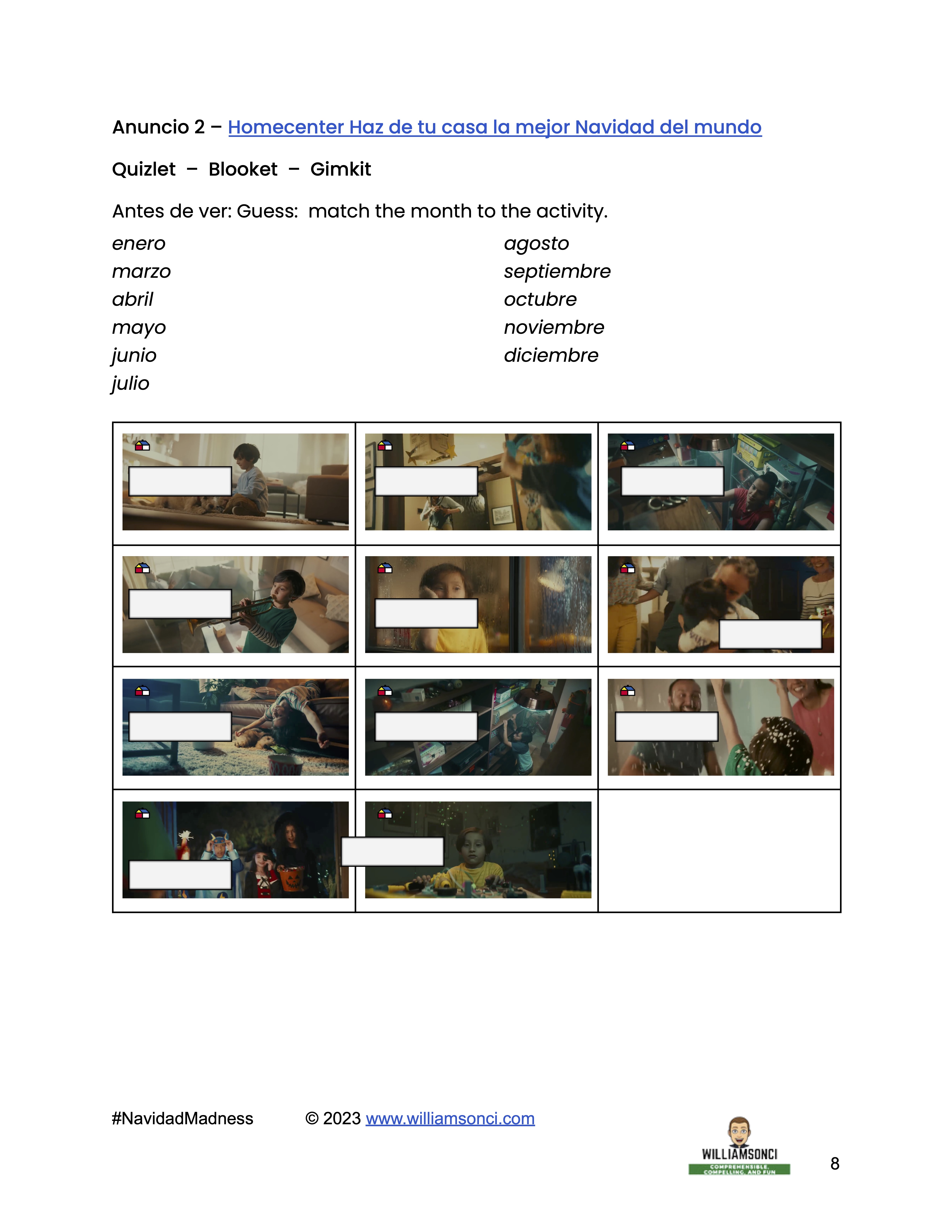 Here it is! The 2023 edition of the Navidad Commercial Madness! This edition contains 8 commercials with activities to make each commercial comprehensible such as readings, image sequence, writing activity, write, transcripts, matching, and more. It has links to Gimkit, Quizlets, Blooket, screenshots, and a full slideshow of all of the commercials with the activities. This takes as looooooong time to make so I hope you enjoy it. All of these activities are at the novice-mid to novice-high level and are good for all levels.